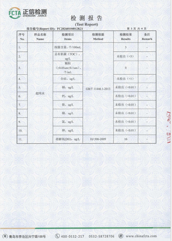 半导体超纯水水质检测报告,这是仟净牌超纯水水质第三方检测报告。贵州至善材料在毕节织金县,主营工业蒸馏水,去离子水,超纯水,冷却液。欢迎联系19112675258,服务区域:贵阳,